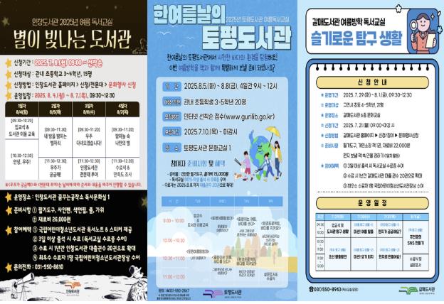 각 도서관 독서교실에 대한 더 자세한 사항은 구리시립도서관 홈페이지 문화행사 신청 게시판에서 확인할 수 있으며, 수강 신청 또한 홈페이지에서 가능하다.