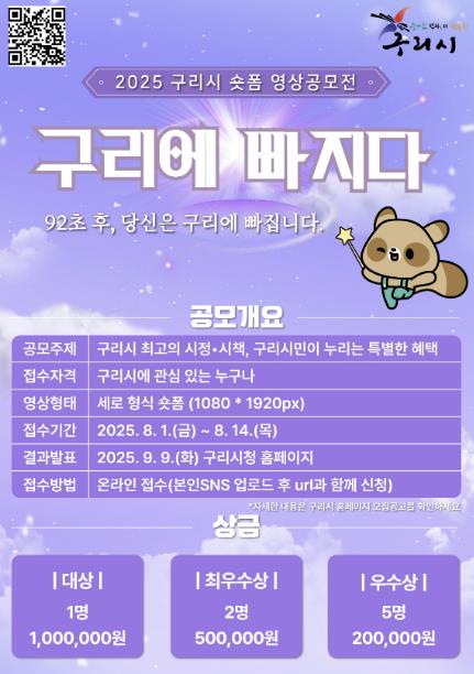 백경현 구리시장은 “이번 공모전을 통해 살기 좋은 도시 구리시의 좋은 정책들을 알리는 좋은 기회가 되길 바란다.”라며, “이를 통해 구리시의 새로운 매력들을 전파하여 구리시 발전과 활성화에 기여하길 바란다.”라고 전했다.