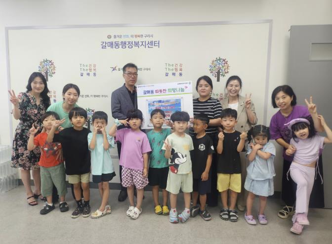백경현 구리시장은 “아나바다 지구마켓 바자회에 참여한 구리시립갈매어린이집 원아들의 따스한 동심을 헤아려서 후원금이 갈매동 지역사회보장협의체 CMS에 기탁되어 취약계층을 위한 복지 특화사업에 사용될 수 있도록 적극 지원하겠다.”라고 말했다.