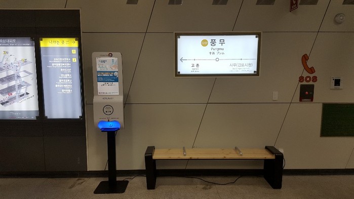 [세계로컬타임즈 최성우 기자] 김포시는 신종 코로나 바이러스 감염증 예방을 위해 김포도시철도 역사 등 시민들의 이용이 많은 장소에 자동 손소독기 23대를 설치했다.