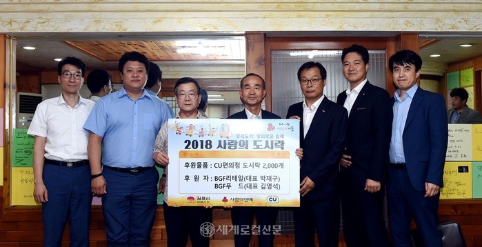 [세계로컬신문 조주연 기자] 국내 유명 편의점 CU를 운영하는 프렌차이즈 업체 BGF리테일이 지난 30일 전북 김제시를 찾아 '사랑의 도시락' 전달식을 가졌다.