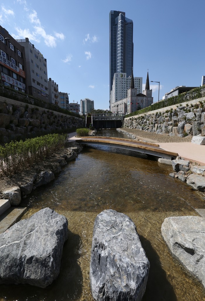 지금은 폭원 18.6m, 수심25㎝의 하루 2만1000여 톤의 깨끗한 물이 흐르는 자연공간으로 되살아 났다.