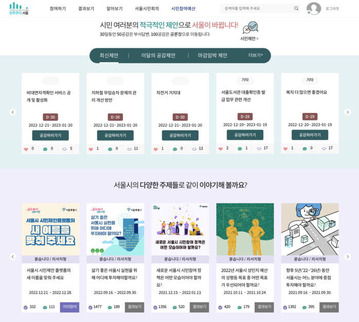 시는 시민들의 작은 아이디어라도 정책화가 가능한 제안으로 발전시켜 신속하게 정책에 반영하는 데에 방점을 두어 내년 1월 중 플랫폼의 기능을 개선하고, 변경된 명칭을 적용할 예정이다.