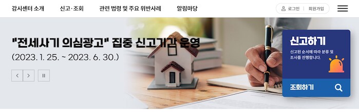 불법광고 발견 시 부동산광고시장감시센터 누리집에 신고‧제보할 수 있다.