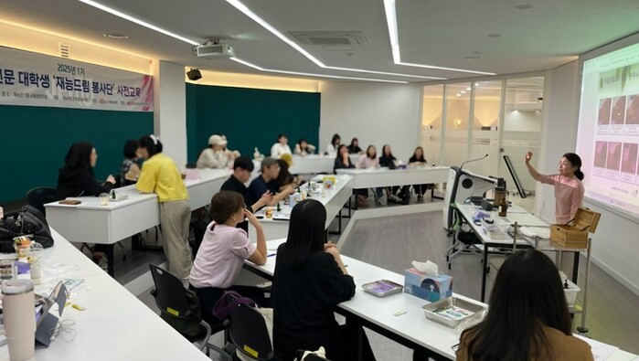 봉사단은 본격 활동에 앞서 치매에 대한 이해를 높이고 봉사활동에 필요한 지식과 태도를 함께 익히기 위해 지난 23일 오후2시~5시까지 재능대에서 사전교육을 받았다. 이날 교육은 치매에 대한 올바른 이해와 어르신과의 소통 역량 강화를 위한 전문 강의와 아로마 마사지 등의 실습으로 이루어졌다.