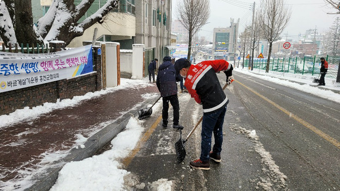 | ▲ ‘내 집 앞, 내 점포 앞, 우리 마을 눈 치우기 운동’ 추진 장면 (사진=홍천군) |