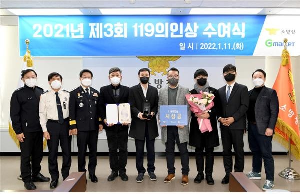 [세계로컬타임즈 김재민 기자] 강원도 소방본부는 지난 11일 오후 3시에 소방청에서 개최된 제3회 119 의인상 시상식에 철원 동송 남성 의용소방대 이용금 씨와 민간인 노범택 씨가 공동수상의 영예를 안았다고 밝혔다.