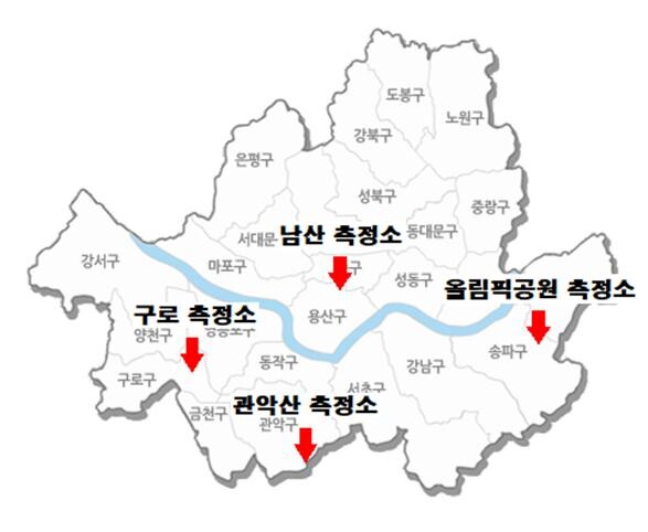 | ▲ 서울시, '온실가스 측정망' 위치 (2023년 2월 기준) (사진=서울시) |