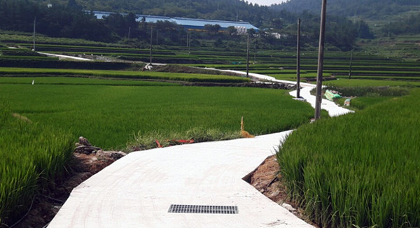 | ▲ 여수시가 추진하는 소규모 주민숙원사업이 80%의 공정률을 보이고 있다. 사진은 사업이 마무리 된 여수시 삼일동 농로 모습.<사진제공=여수시청> |