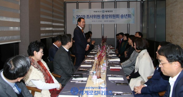 박귀종 중앙위원회 의장은 인사말에서 “바쁘게 지내온 올한해 보람되게 마무리하기 바란다”며 “내년 용산 신사옥으로 입주하는 세계일보와 함께 '2020 용산시대'를 여는 세계로컬타임즈 역시 중앙위원·조사위원 회의 활성화를 위한 매개체 역할을 다하겠다”고 밝혔다.