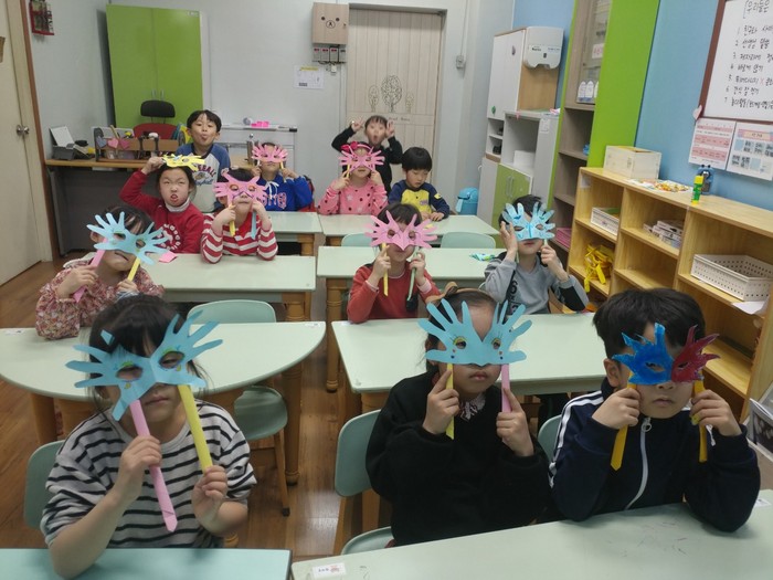 | ▲ 아이누리 돌봄나눔터에서 아이들이 가면놀이를 하고 있다.(대야종합사회복지관·사진=시흥시 제공) |