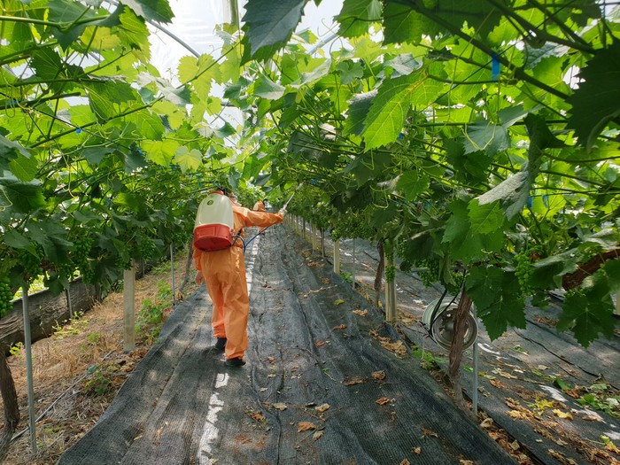 | ▲ 샤인머스켓 방제력 시험을 하고있다.(사진=경북도 제공) |