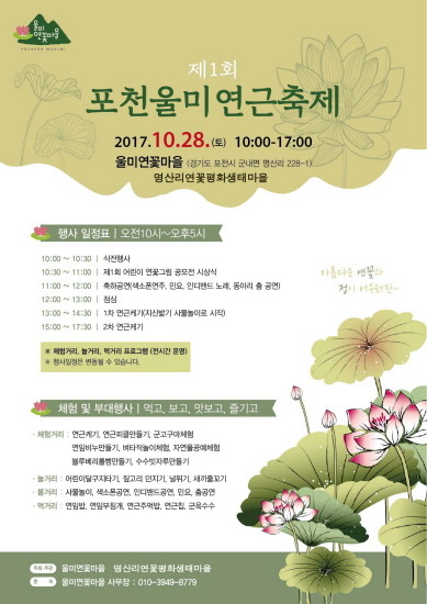 [세계로컬신문 장동수 조사위원] 경기도 포천시 군내면에 위치한 명산리연꽃평화생태마을이 오는 28일 제1회 포천울미연근축제을 연다.