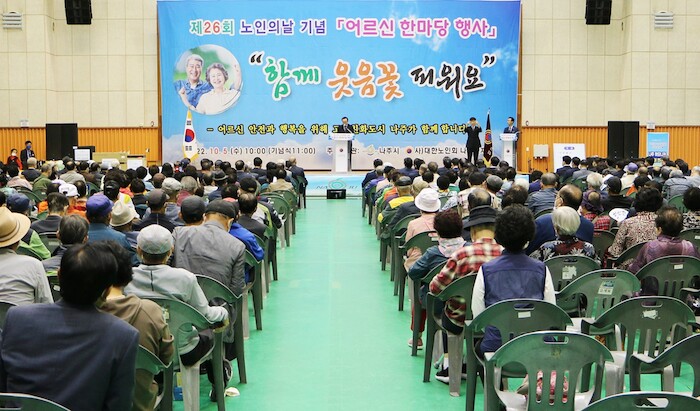 [세계로컬타임즈 강석운 기자] 나주시(시장 윤병태)는 지난 5일 종합스포츠파크 다목적체육관에서 제26회 노인의 날을 기념해 ‘어르신 한마당’ 행사를 개최했다고 7일 밝혔다.