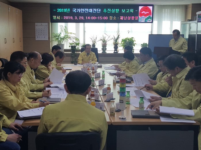 | ▲ 홍인성(가운데) 중구청장은 '국가안전대진단'에 대한 추진상황 보고회를 열고 있다. (사진=중구 제공) |