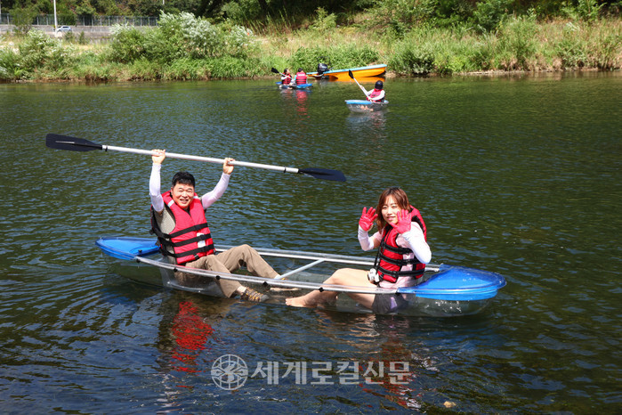 | ▲ 무주 호롱불마을의 투명 카누타기 모습. <사진제공=무주군> |