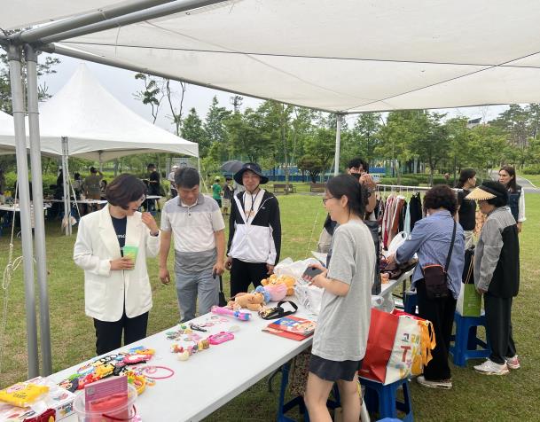 올해 시내권역(아양도서관 옆 잔디공원)에서 시범적으로 개최한 장터에는 비가 오는 궂은 날씨에도 불구하고 주변에 아파트 단지로 접근성이 좋아 가족 단위, 학생 등이 가정에서 사용하지 않는 의류 및 물건 판매하는 장똘뱅이로 참여했다.