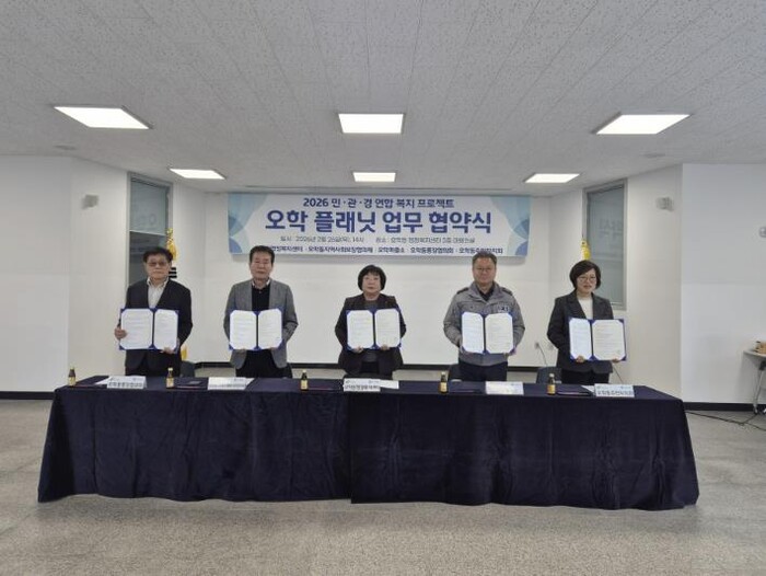 이번 협약식은 오학동의 안전과 복지망 강화를 위해 5개 주요 기관이 협력하는 첫걸음으로, 1990년대 인기 만화인 ‘캡틴 플래닛’을 모티브로 하여, 지역사회의 다양한 문제를 해결하기 위한 협력과 연대의 중요성을 강조하고 있다.