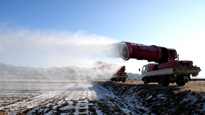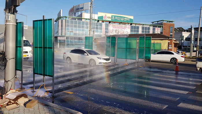| ▲ 강화군은 철새 출현지 하천 및 주변도로를 매일 소독하고 있다. (사진=강화군 제공) |