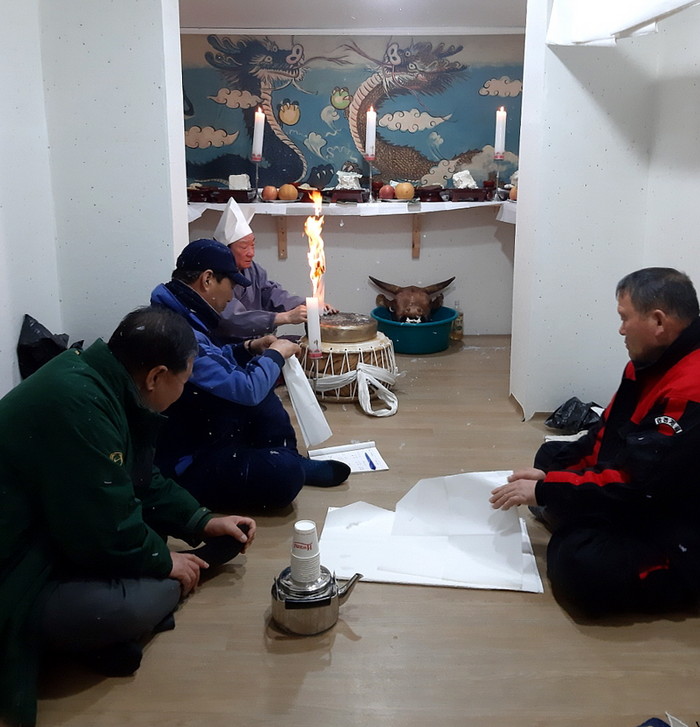 | ▲ 한진 풍어제에 참가한 한진포구 지역 마을 주민들이 풍어제를 진행하고 있는 모습.(사진=당진시 제공) |