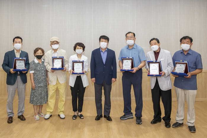 | ▲박형우 계양구청장은 10개월간 계양산성박물관에 유물을 기증한 주민7명에게 감사패를 전달했다. (사진=계양구 제공) |