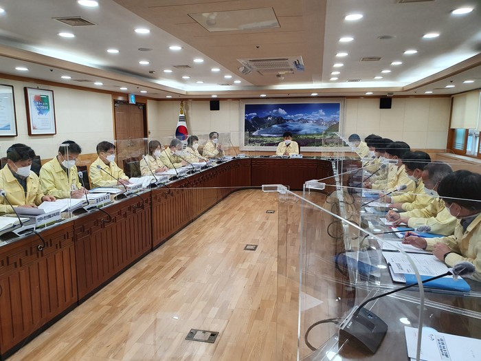 ▲ 전남교육청에서 코로나19 대응 긴급 확대간부회의가 열리고 있다.(사진=전남교육청) |