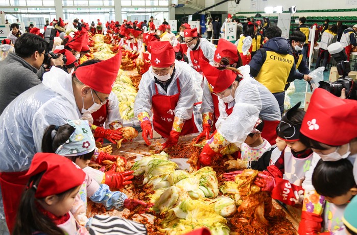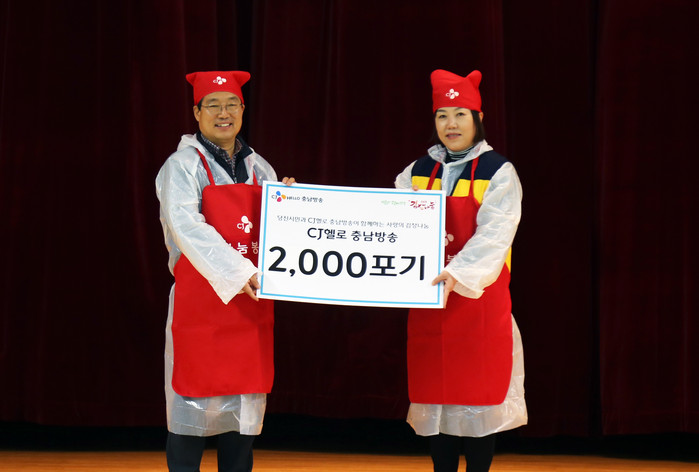 [세계로컬타임즈 홍윤표 조사위원] 매서운 추위가 기승을 부리던 지난 8일 충남 당진 신성대학교에서 김홍장 당진시장과 공무원, CJ헬로 충남방송 박미숙 대표 등 임직원과 자원봉사자 등 100여 명이 김장 2,000포기를 담가 당진지역 취약계층 400가구에 전달해 사랑의 훈훈함을 더했다.