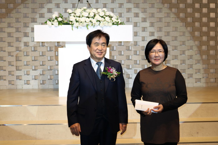 이날 행사에서는 황학수 회장이 북한이탈주민 대안학교인 금강학교 주명화 교장에게 장학금을 전달했다.