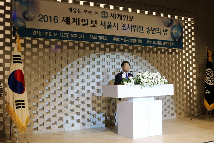 [이우춘 세계일보 조사팀장] 세계일보 조사위원 서울시 상임위원회는 12일 오후 중랑구에 위치한 위더스 웨딩홀에서 2016 송년의 밤 행사를 열었다.