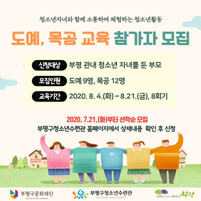 [세계로컬타임즈 장선영 기자] 인천시 부평구는 지역 청소년 자녀를 둔 부모를 대상으로 자녀와 함께 소통하며 참여할 수 있는 청소년 체험활동 도예·목공 교육을 진행한다.