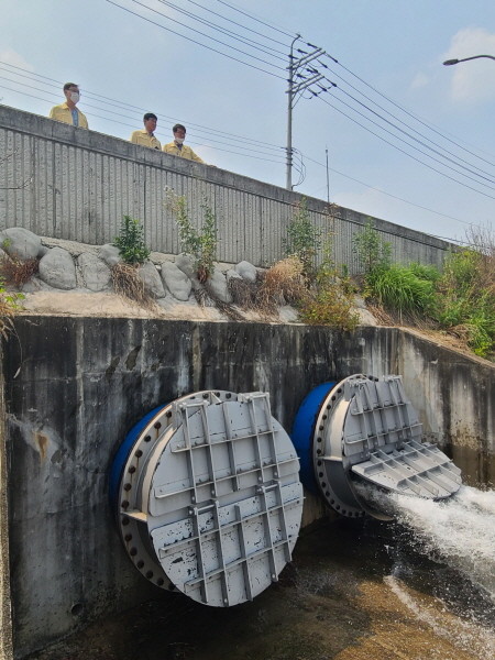 | ▲동두천시는 호우 등을 대비해 배수펌프장 두곳에 대해 시험가동을 실시했다. (사진=동두천시 제공) |