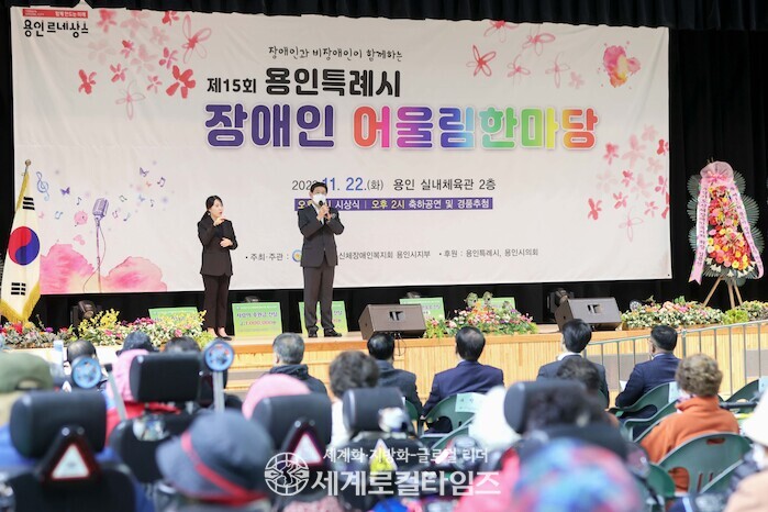 [세계로컬타임즈 이지안 기자] 22일 용인시 처인구 마평동 실내체육관에서 장애인과 비장애인이 함께 화합하는 ‘제15회 장애인 어울림 한마당’ 행사가 열렸다다.