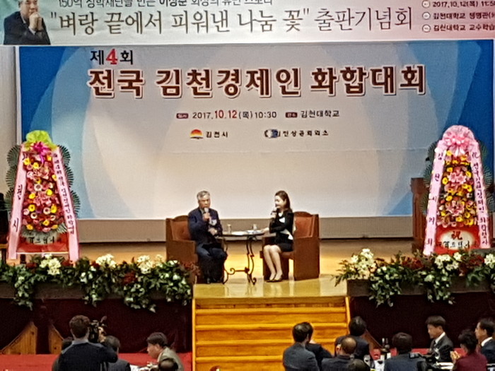 | ▲ 이상춘 회장이 지난 12일 김천대학교에서 열린 '전국 김천경제인 화합대회'에서 출판기념회를 열고 있다. |