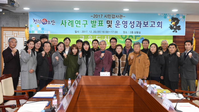 | ▲ 오산시가 시민감사관 사례연구발표 및 운영성과보고회를 개최하고 기념촬영을 하고 있다. |