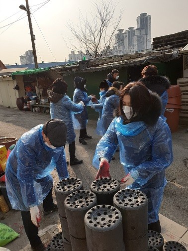 | ▲ 인천 중구 신흥동 지역사회보장협의체에서 사랑의 연탄 나눔을 진행하고 있다. (사진=중구 제공) |