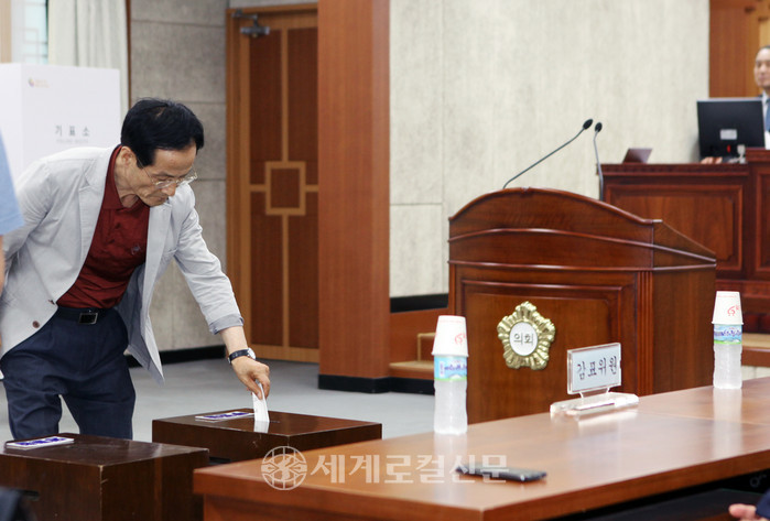 | ▲ 전북 김제시의회 서백현(민주평화당) 시의원이 지난 2일 오전 시의장 선출을 위한 투표를 하고 있다. |
