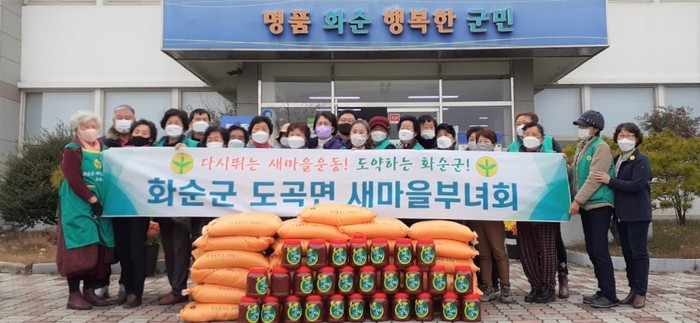 [세계로컬타임즈 강석운 기자] 화순군(군수 구충곤)은 8일 도곡면 새마을부녀회가 이웃 사랑 나눔을 실천하고자 직접 담근 고추장 27통과 백미(20kg) 27포대를 마을 경로당에 전달했다고 밝혔다.