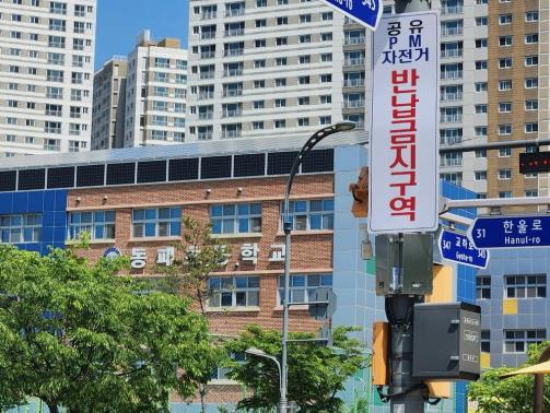 경기도북부자치경찰위원회는 지난해 11월, 의정부 새말초등학교 통학로에 ’공유 개인형 이동장치 반납금지구역‘을 설정했고, 이번에는 파주시로 대상지를 확대했다.