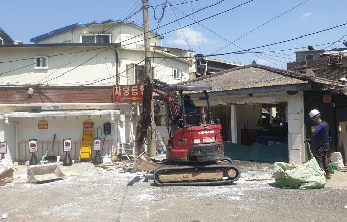 [세계로컬타임즈] 파주시는 지난 22일 연풍리 성매매집결지 내 불법건축물 1개소에 대해 9차 행정대집행을 본격 단행하고, 불법으로 증축된 속칭 ‘유리방’이라 불리는 대기실을 철거했다고 밝혔다.