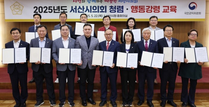 조동식 의장은 “청렴교육을 통해 우리 모두 초심을 다지고 스스로를 돌아보는 소중한 시간이 되길 바란다”며, “오늘 교육을 통해 얻은 소중한 가르침을 실천으로 옮기며, 모두가 존경받는 서산시의회가 되도록 함께 힘써 주시기를 부탁드린다”고 말했다.
