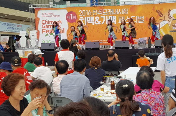 전주 모래내시장 문화관광형시장 육성사업단(단장 손길선)이 전통시장 활성화를 위해 마련한 이번 축제는 25일과 26일까지 이틀간 열리며 치킨과 맥주는 물론 시장 상인들이 회의를 걸쳐 선정한 먹거리가 판매된다.
