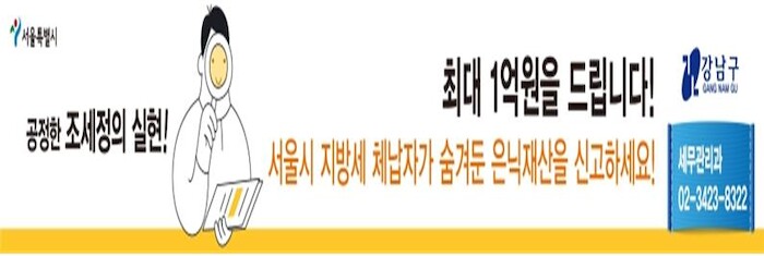서울시는 악의적인 체납행위를 근절하기 위해 금융조회, 가택수색은 물론 가상자산 압류와 같은 신(新) 징수기법을 활용하고 있지만 재산은닉수법이 날로 지능적이고 교묘해지고 있어 은밀하게 이뤄지는 체납자의 은닉재산을 추적하기 위해서는 시민들의 자발적 신고가 무엇보다 절실한 실정이다.