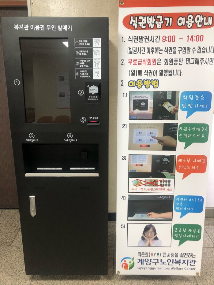 | ▲ 계양구노인복지관은 효자식당에 무인 식권발급기를 도입했다. (사진=계양구 제공) |