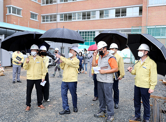 특히, 설동호 대전광역시교육감은 공사현장이나 안전취약시설 사전점검을 강조하여, 5일 오전, 제11호 태풍‘힌남노’에 대비해 대전괴정중학교 강당증축 공사 현장을 방문하고 학교 내 공사현장 안전관리 실태를 점검했다.