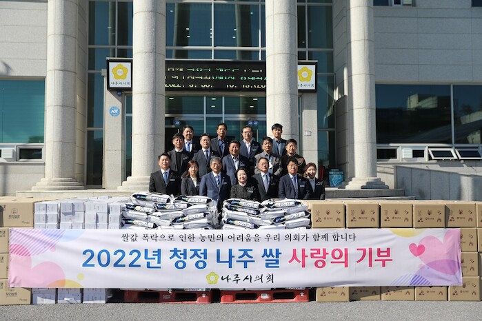 이번 기부물품 전달 또한 쌀값문제 해결에 대한 나주시의회의 지속적인 관심과 노력의 일환으로 진행된 것으로 의회는 나주에서 생산된 쌀과 누룽지, 뻥튀기 등 쌀 가공식품을 구매해 전달함으로써 나눔실천을 통한 시의회의 사회적 책임을 이행하고, 지역 농산물의 소비 촉진 및 판로 확보에 기여하는 등 의의가 있다고 설명했다.