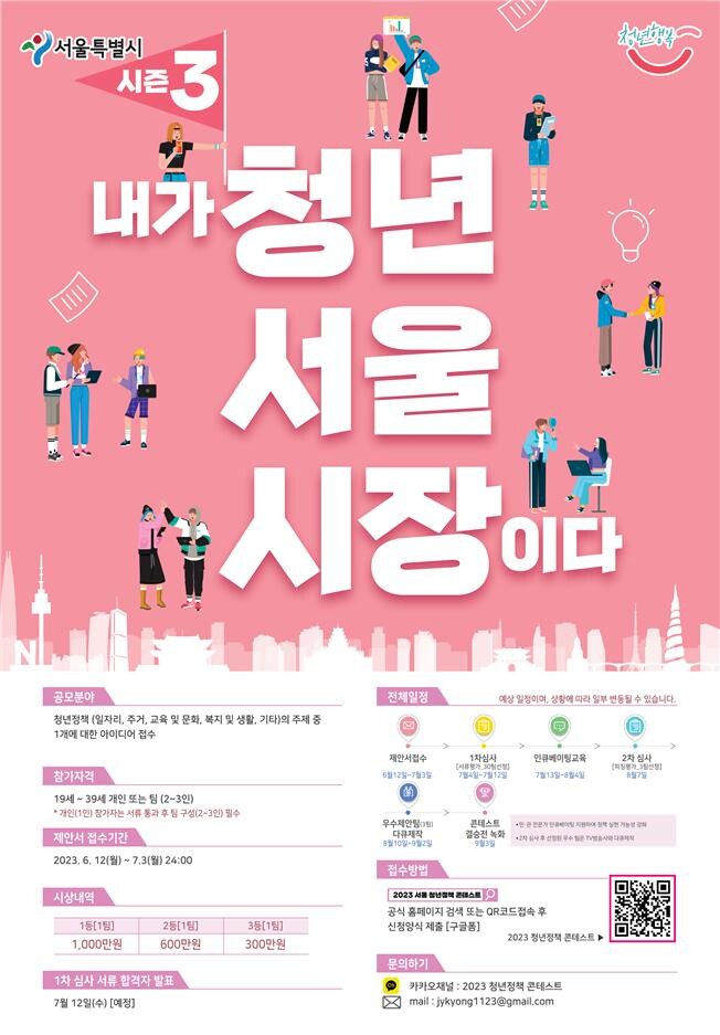 서울시는 2023년 청년정책 콘테스트 ‘내가 청년 서울시장이다’를 개최하고, 오는 12일부터 7월 3일까지 약 3주간 참가자(팀)를 모집한다.