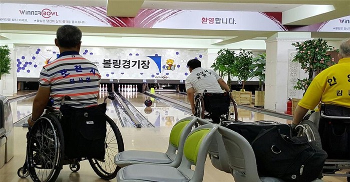 | ▲김포시장애인체육회 소속 볼링선수들이 경기도장애인 체육대회 출전해 경기를 진행하고 있다.<사진제공=김포시청> |