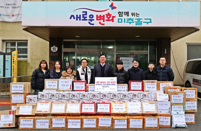 이번 전달식에는 런앤점프, 미추홀복싱클럽, 아리푸드 등 지역 사회 후원처가 참여해 라면 100상자와 김치 40상자를 전달했다.