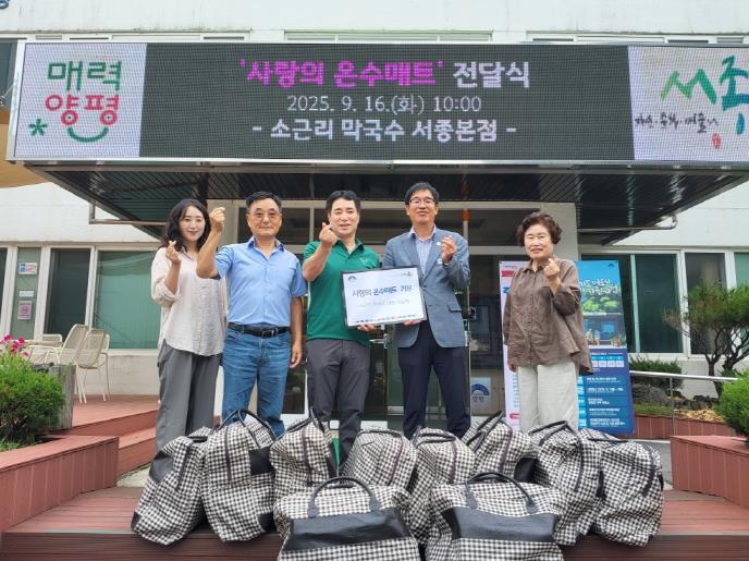홍주표 서종면장은 “해마다 잊지 않고 취약계층을 위해 온정을 더하는 기부에 깊이 감사드린다”며 “기부해 주신 온수 매트는 서종면에 꼭 필요하신 분에게 전달하겠다”고 밝혔다.