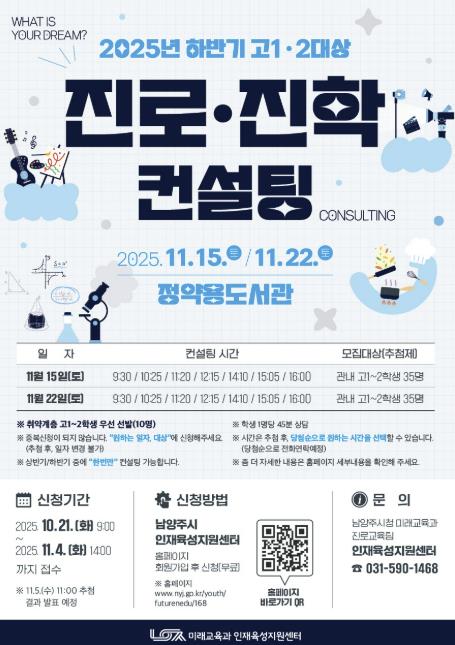 [세계로컬타임즈] 남양주시는 오는 21일부터 ‘2025년 하반기 진로·진학 컨설팅’참가자를 모집한다고 밝혔다.